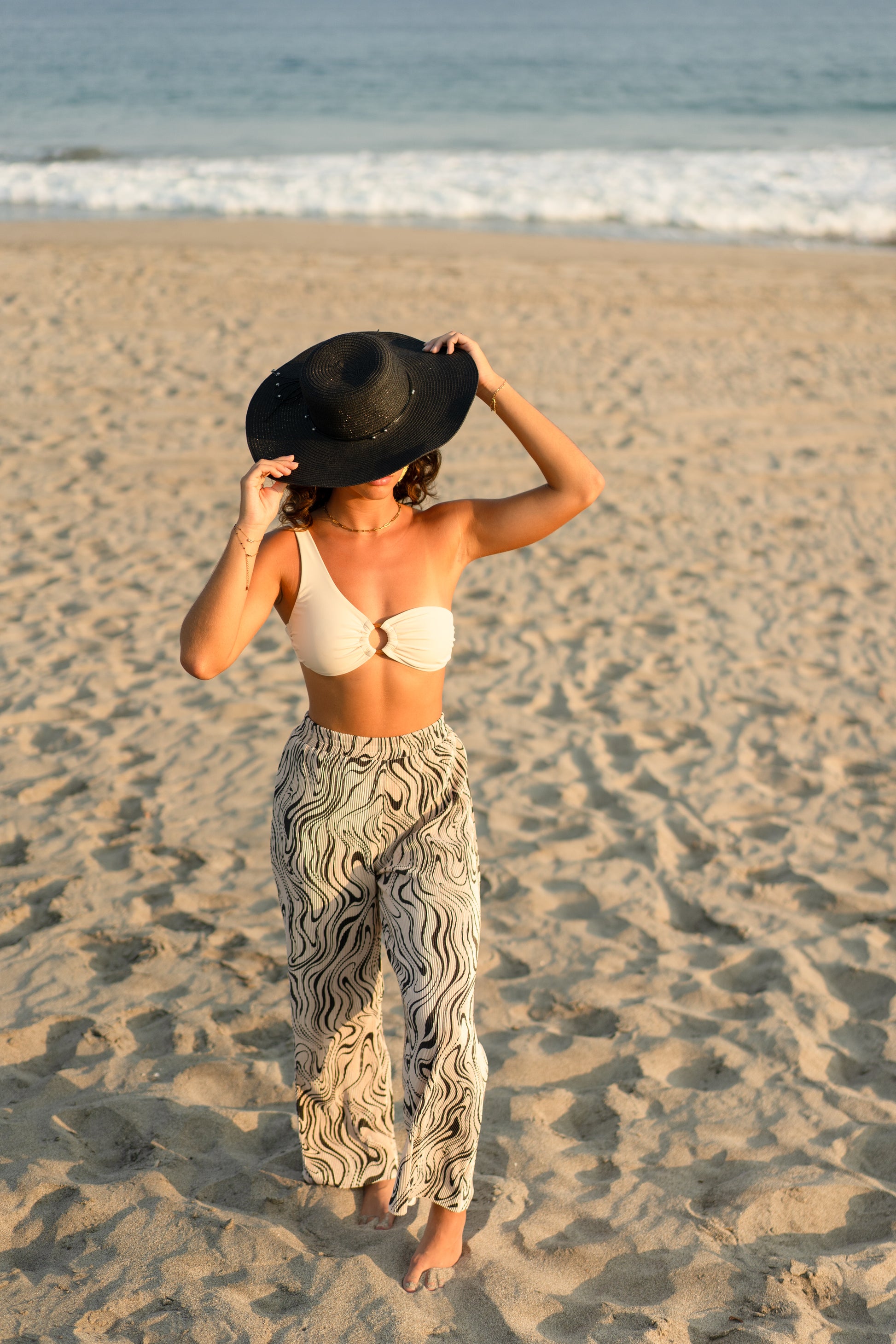 Detalles - Pantalón de poliéster y spandex, con elástico en la cintura.