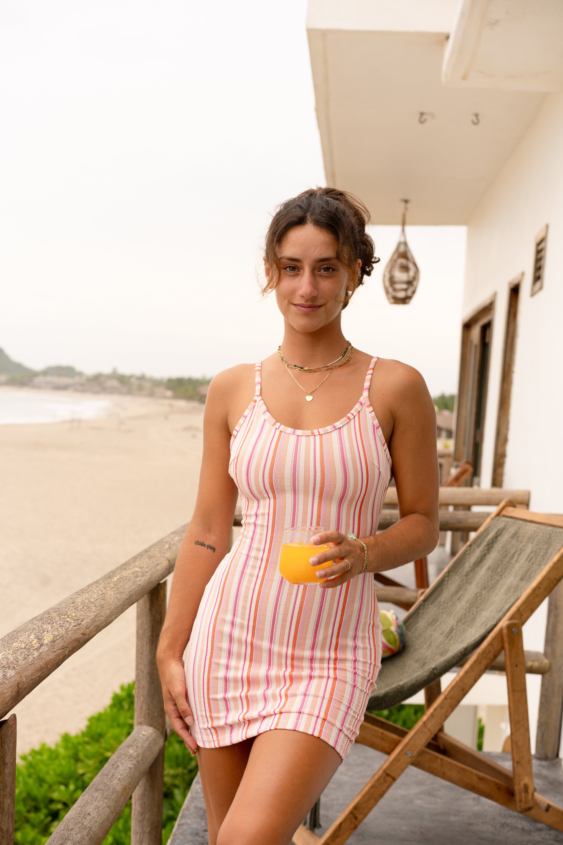 Detalles - Vestido corto, con escote en la espalda y tirantes ajustables.